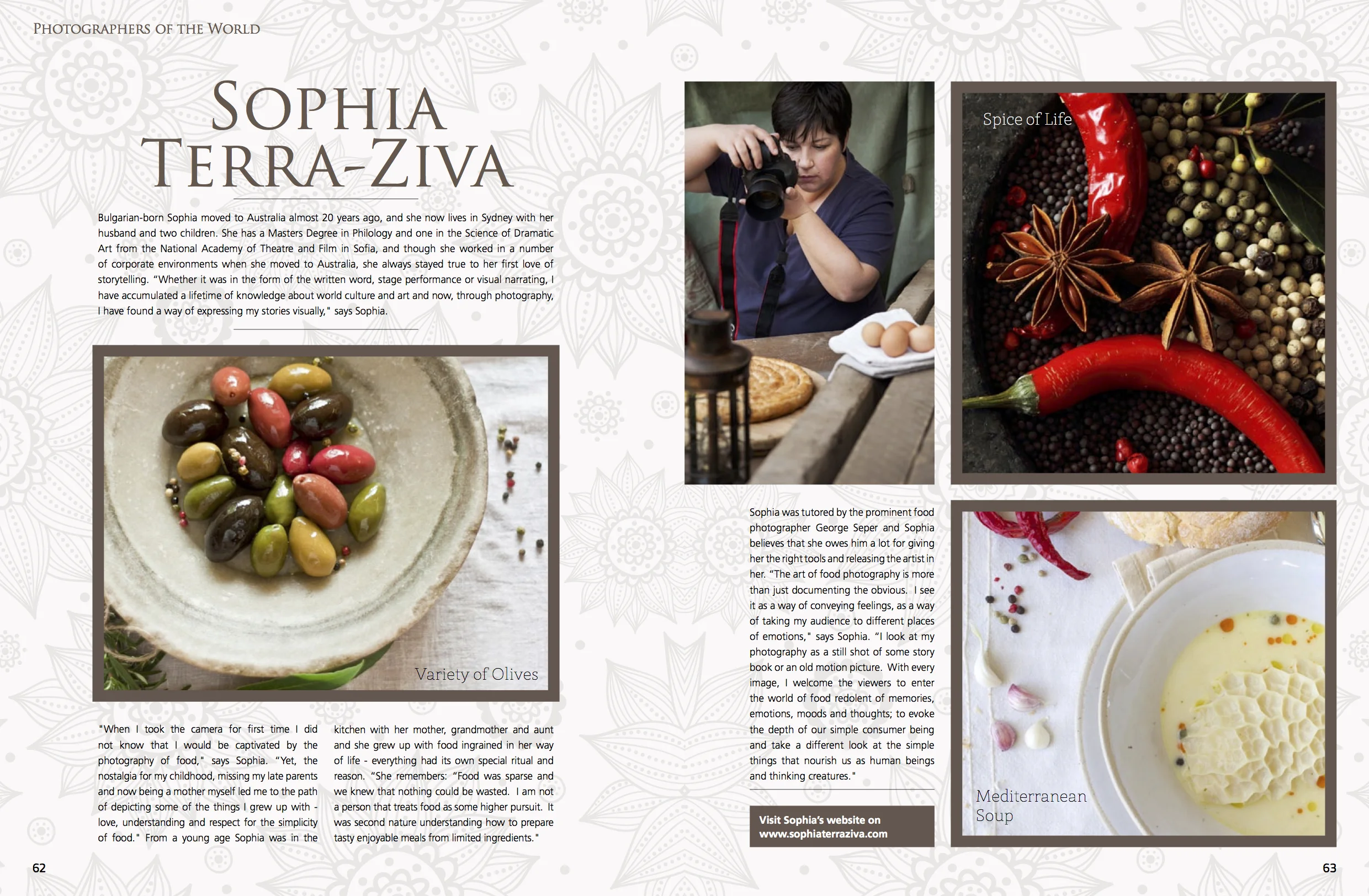 The prestigious South African Magazine THE CULINARY ARTIST brings its readers unique stories featuring food pioneers, wine connoisseurs, most revered hoteliers and hard-working inspirational chefs. In their 2013's Christmas issue a double spread was dedicated on feature about my photography work.